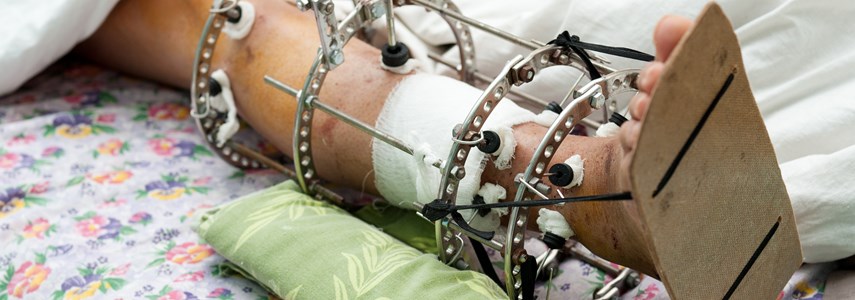 Fortunately amputation was avoided, however, Kenneth required further surgery that involved removing two and a half inches of damaged bone. His leg was fitted with steel rods, pins and wires, with an external fixator to prevent movement.